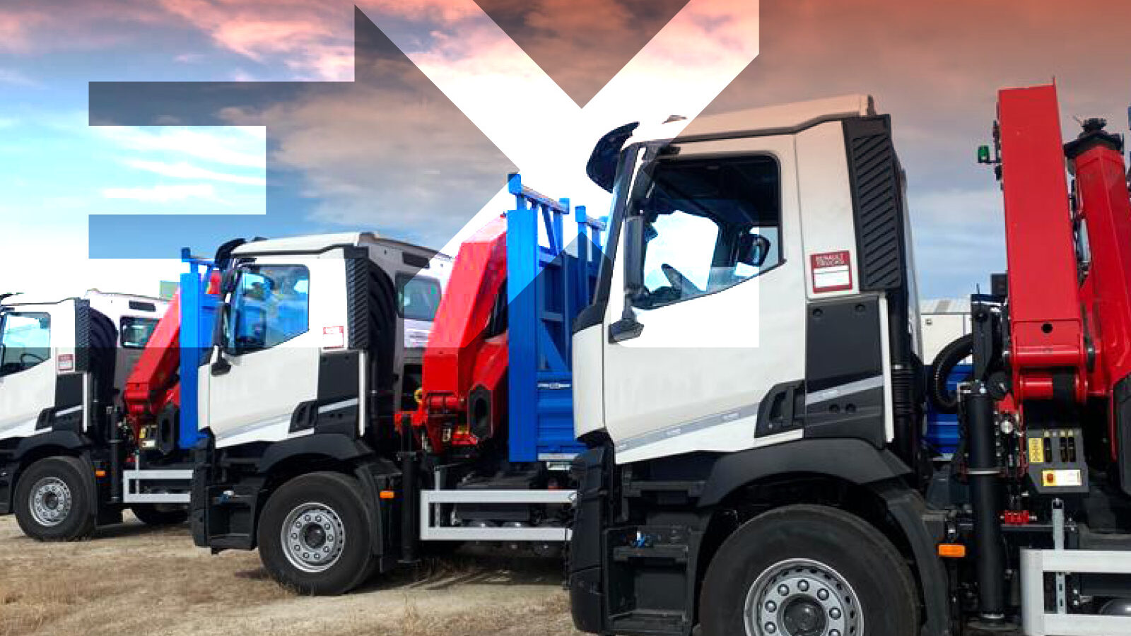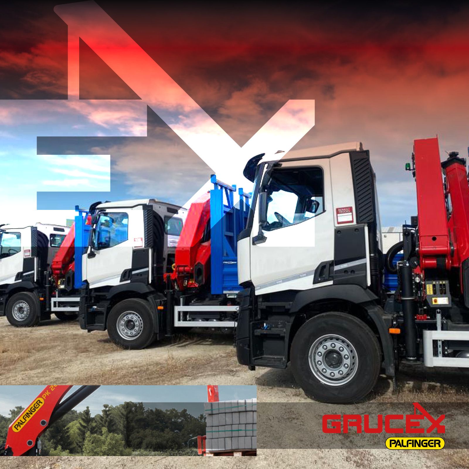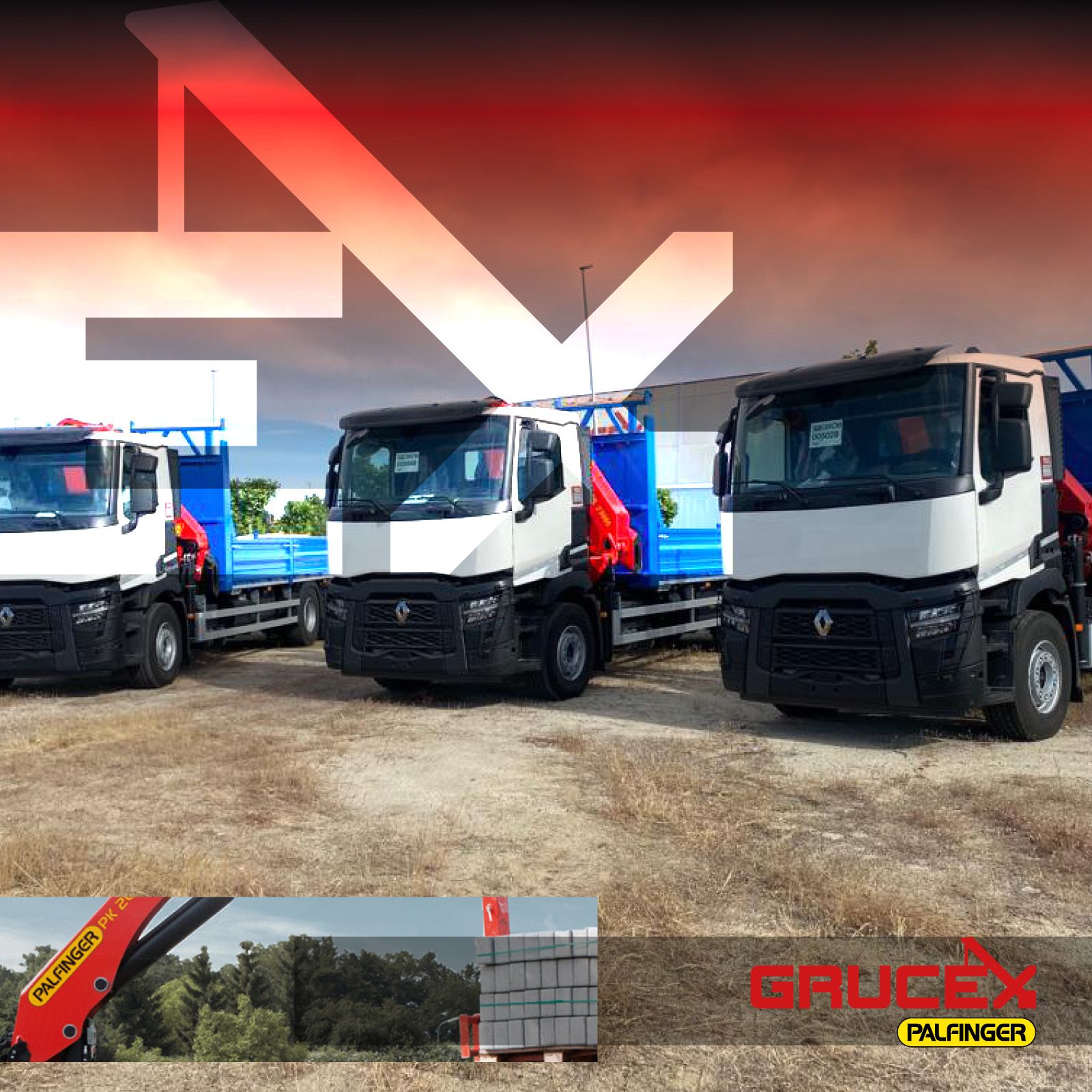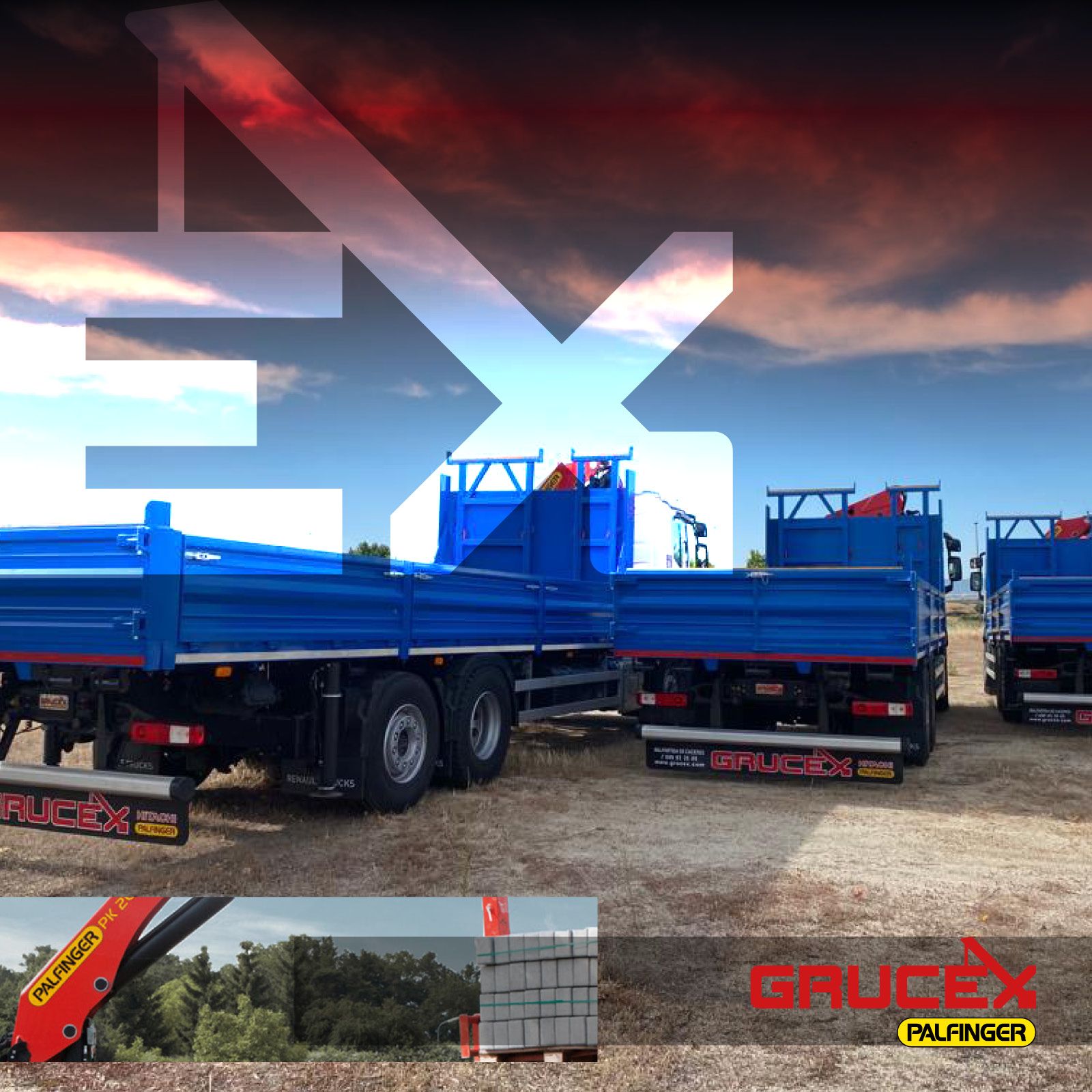 Fabricación de caja y montaje de grúa PK33002 EH en tres vehículos destinados a la gestión de materiales de hierro.